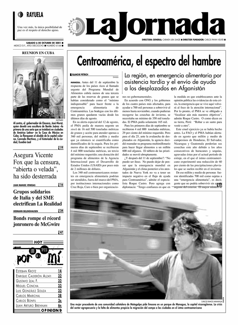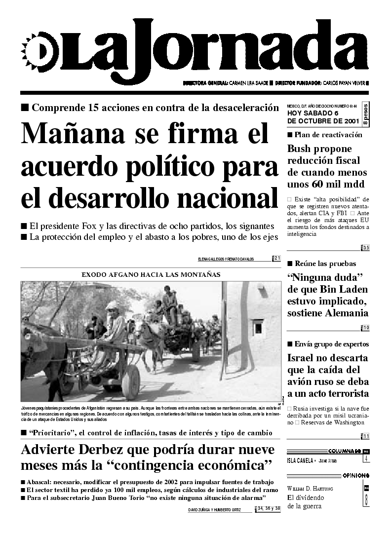 La Jornada, Coordinación de Sistemas Francisco Petrarca 118, Col. Chapultepec Morales, delegación Miguel Hidalgo México D.F. C.P. 11570 Teléfono (525) 262-43-00, FAX (525) 262-43-56 y 262-43-54