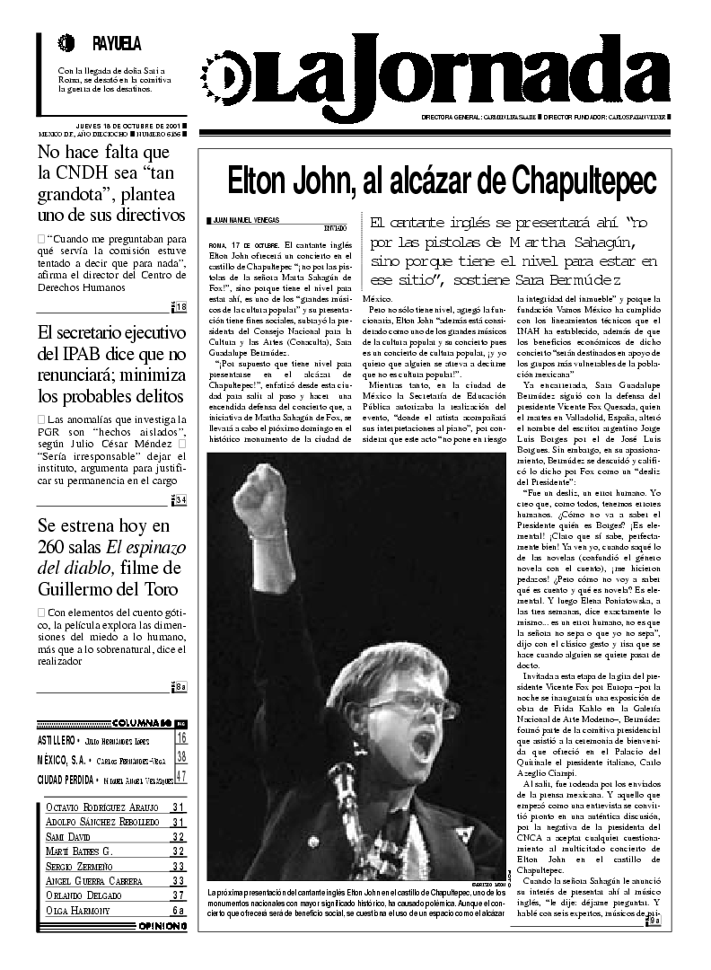 México, D.F. jueves 18 de octubre de 2001