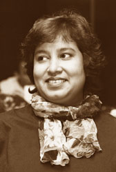 Recientemente un tribunal admitió una denuncia por blasfemia contra la escritora Tasleema Nasreen (Bangladesh, 1962), la cual fue presentada por un religioso en el sur de Bangladesh. En 1990, un grupo de musulmanes radicales pronunciaron una fatwa, sentencia de muerte contra la autora de Lajja, (Vergüenza), novela que se ha traducido a veintidós idiomas. Autora de cerca de veinte libros, Tasleema Nasreen ha recibido varios premios, entre ellos el Sakharov de Libertad de Pensamiento otorgado por el Parlamento de la Unión Europea. No usa el velo, al que considera símbolo de opresión, en contra de lo establecido por la religión musulmana. Vergüenza fue considerado por los fundamentalistas como un libro blasfematorio. En él, la escritora refleja su pensamiento: la defensa de la mujer como propietaria de su propio cuerpo y la propuesta de igualdad de derechos para el hombre y la mujer en el terreno sexual. Los fundamentalistas acusan a Tasleema de escribir en contra de lo preceptos del Corán. Para la ley de Mahoma, la mujer representa el deseo, la seducción, la belleza, la sexualidad desenfrenada; ella es la perturbadora del orden social y de la fe, de manera que debe encerrársele detrás de un velo (hidjab) o un chal (khimar). En el capítulo XXIV, versículo 31 del Corán, se lee: "Di a las creyentes que escondan sus partes íntimas y que no dejen ver más que sus adornos externos." Tasleema, ¿cuándo empezaste a escribir? Empecé a escribir poesía, novela y ensayo cuando tenía trece años. Más tarde estudié medicina y seguí escribiendo. Soy ginecóloga de profesión y me gustaba mucho ejercer porque atendía a muchas mujeres que mueren por no ser tratadas a tiempo; sentía realmente la responsabilidad de hacer algo por ellas. Sin embargo, tuve que dejar mi trabajo porque el gobierno confiscó mi pasaporte y empezó a perseguirme; desde entonces me dedico a escribir de tiempo completo. En Vergüenza las frases de los personajes aluden frecuentemente al sentimiento de vergüenza de pertenecer a un país (Bangladesh) supuestamente democrático y que en realidad favorece a la religión musulmana; la vergüenza que sienten los hindúes de vivir sometidos a los musulmanes en su propio país, de vivir escondidos "como ratas" para que no se descubra su preferencia religiosa... Sí, hablo de la vergüenza en mi libro porque creo que los asesinos no tienen conciencia, son gente que no conoce la palabra tolerancia. Siento vergüenza por los asesinos de mi país. En Vergüenza escribo que las minorías religiosas fueron víctimas de muchos asesinatos, y que el Estado no pudo hacer nada para impedirlo, así que fue una vergüenza no sólo para el gobierno, sino para todos los ciudadanos. Bangladesh es un país donde la religión oficial es el Islam porque los militares querían legitimar su poder y rechazaron el secularismo.