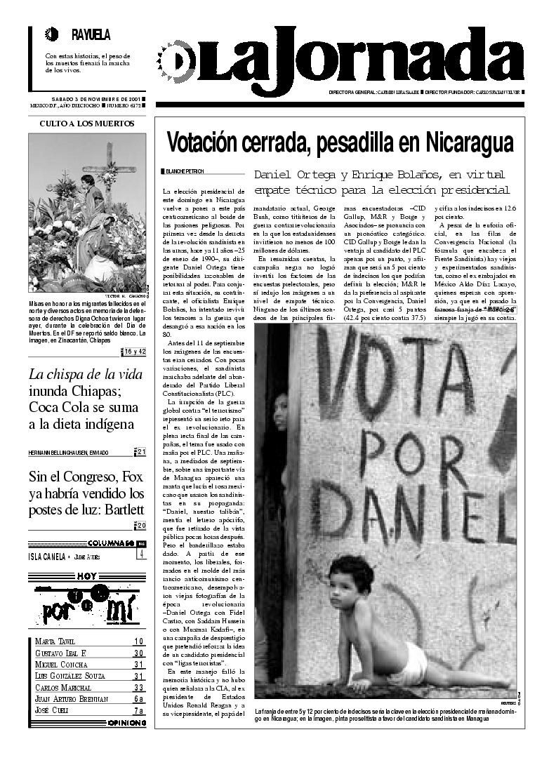 La Jornada, Coordinación de Sistemas Francisco Petrarca 118, Col. Chapultepec Morales, delegación Miguel Hidalgo México D.F. C.P. 11570 Teléfono (525) 262-43-00, FAX (525) 262-43-56 y 262-43-54