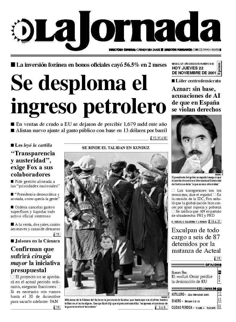 La Jornada, Coordinación de Sistemas Francisco Petrarca 118, Col. Chapultepec Morales, delegación Miguel Hidalgo México D.F. C.P. 11570 Teléfono (525) 262-43-00, FAX (525) 262-43-56 y 262-43-54