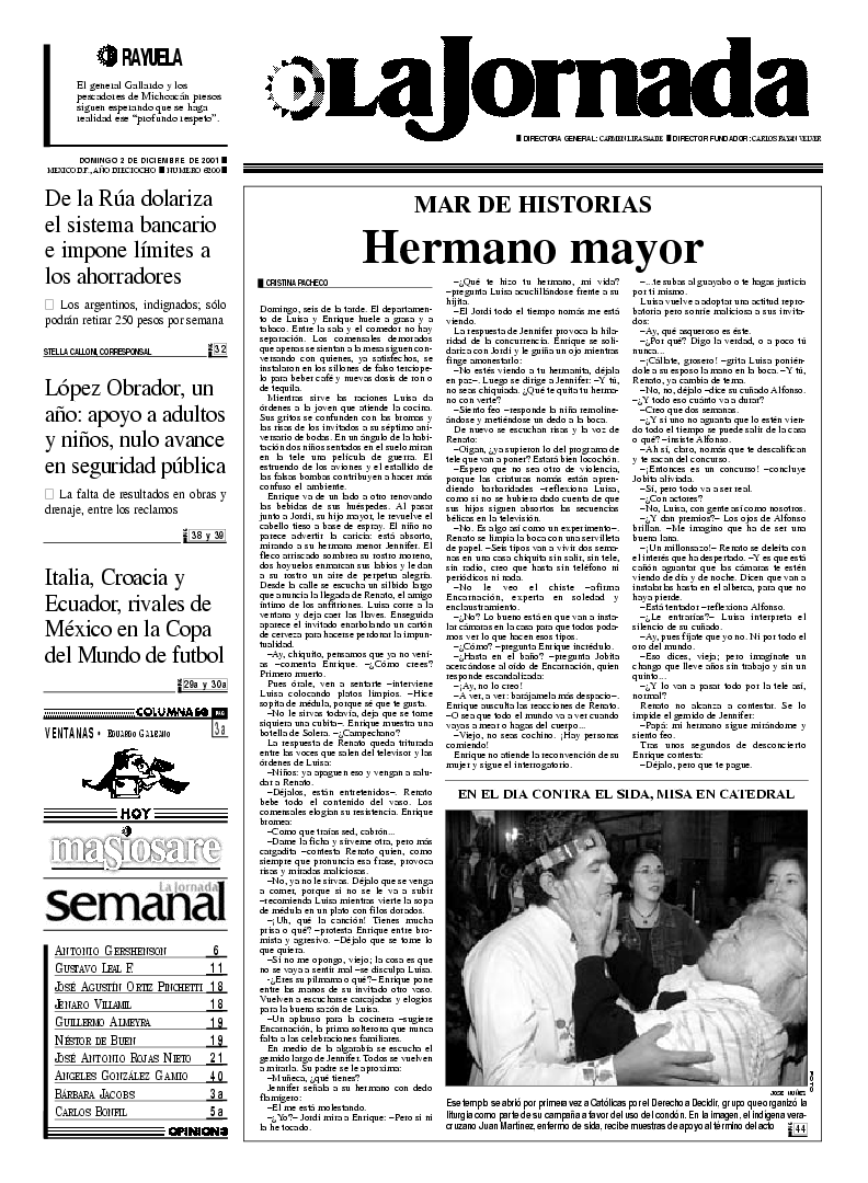La Jornada, Coordinación de Sistemas Francisco Petrarca 118, Col. Chapultepec Morales, delegación Miguel Hidalgo México D.F. C.P. 11570 Teléfono (525) 262-43-00, FAX (525) 262-43-56 y 262-43-54