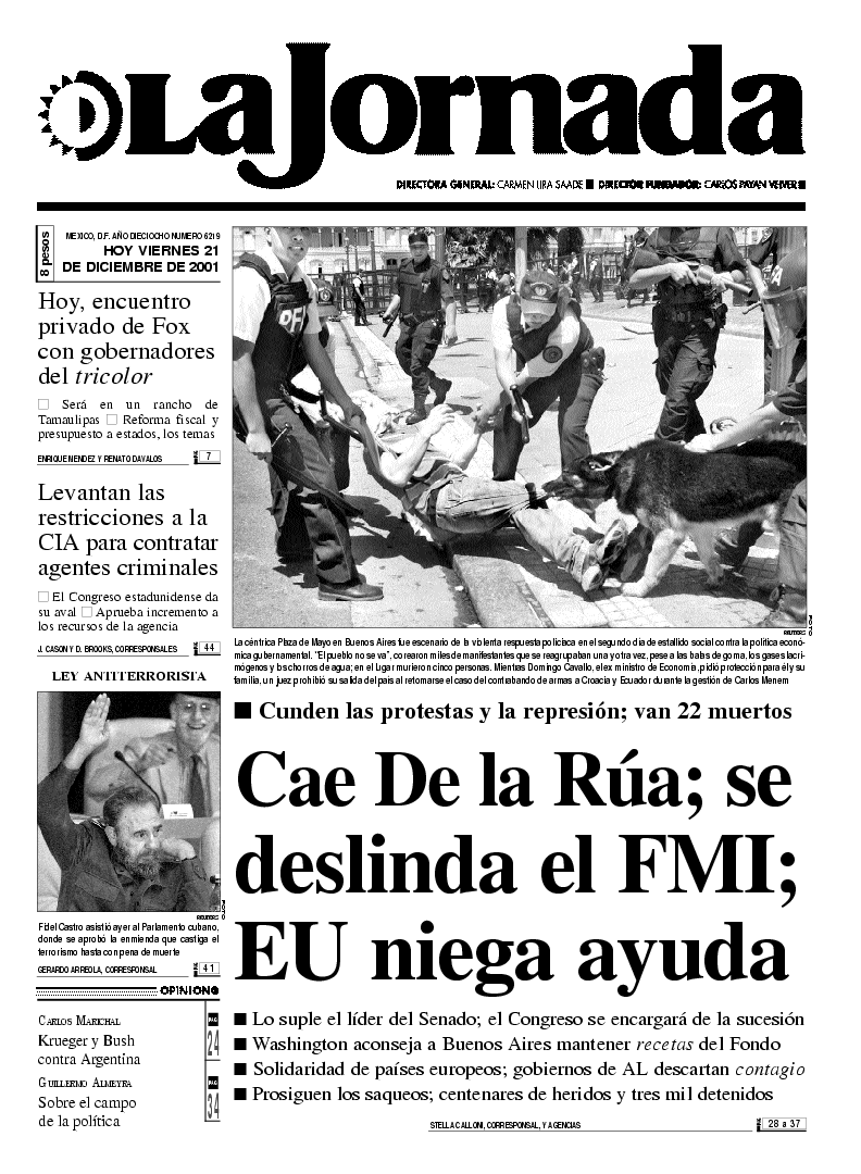 lugar murieron cinco personas. Mientras Domingo Cavallo, el ex