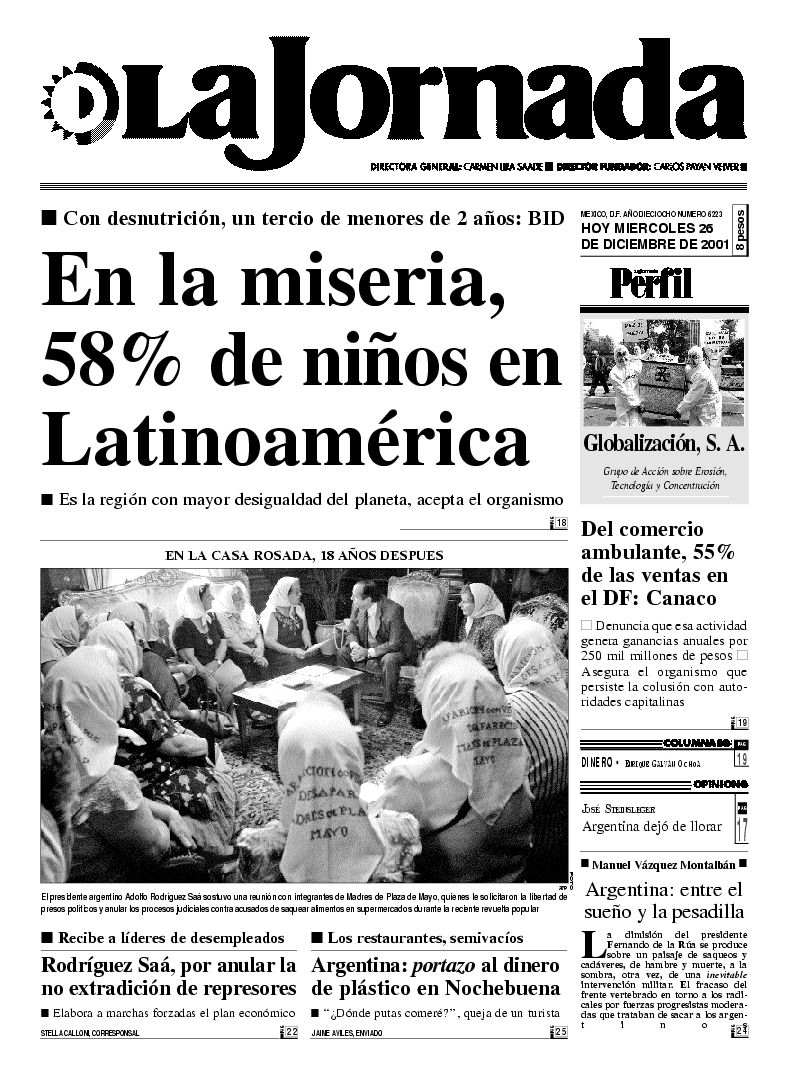El presidente argentino Adolfo Rodríguez Saá sostuvo una reunión con