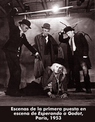 ¿Pero a qué se ha llegado con esta libertad total de las determinaciones comprendidas en el modelo del ser? No ciertamente al ser, sino más bien a los riesgos del no ser lo que no debe ser siempre entendido como una condena, sino sólo como una advertencia de que el hombre contemporáneo se debe hacer a sí mismo. En las artes figurativas, después de haber representado tanto (de cada rostro se ha hecho un retrato, cada ángulo de la naturaleza se ha convertido en paisaje, cada objeto colocado sobre la mesa ha podido convertirse en "naturaleza muerta"), los creadores ya no quieren representar nada de cuanto existe, sino que en el mejor de los casos hacen arte abstracto; en el conocimiento científico, en el cual han sido develados algunos misterios del pasado, han aparecido nuevos misterios, incluso en el plano más racional, como el de las matemáticas, con las paradojas de la lógica; en la técnica, donde los resultados obtenidos son muy superiores a cuanto había soñado el hombre del pasado con su imaginación pigre y ligada al modelo animal (el vuelo de los pájaros, por ejemplo), se ha llegado a tomar por asalto la naturaleza y a la pregunta de si un cerebro que tuviese todo el resto del cuerpo artificial o, viceversa, un cuerpo natural con un cerebro artificial, sería el mismo hombre, otro hombre o simplemente un hombre. En la literatura, después de haber dado curso a todos los mensajes, se ha llegado a la ausencia de mensaje y puesto que también la ausencia de mensaje era una manera de decir algo, se ha llegado a la anti-palabra y al anti-sentido, al anti-discurso sobre la anti-naturaleza y sobre el anti-hombre. Es admirablemente clara, a este respecto, la salida de Beckett en Esperando a Godot porque, en su género, se trata de una salida. Lo individual existe; lo general existe, bajo el nombre de Godot (God, Gott, o su caricatura, el dueño de las ovejas y de las cabras, con las que no hace nada), lo esperado. Pero las determinaciones no existen ya y los hombres no quieren imponérselas más. Las boicotean. Es posible ver el boicoteo (de la naturaleza, del sentido, de la comunicación, del mensaje, de los ordenamientos) en varias creaciones del arte contemporáneo. Pero la obra de Beckett es la teorización del boicot. "Nada que hacer", dice Estragón, y Vladimir, que continúa recordando algo y deseando algo, al menos un poco de conversación y de juego, añade: "Empiezo a creerlo también yo. Me he resistido bastante a este pensamiento... Y retomo la lucha." Pero no hay nada más que hacer que esperar la venida de Godot. Quedan vacío lo individual y vacío lo general. Entre ellos no dejan lugar a casi nada. Sin embargo uno mira el sombrero, como si esperase encontrar algo, y el otro mira el zapato, y Vladimiro se pregunta: "¿Y si nos peináramos?" Habría lugar para la peinada. "¿De qué?", pregunta Estragón. "¿De ser nacidos?" Y trae a la mente la reflexión de la antigüedad: "Mejor para el hombre si no hubiera nacido." "¿Tenías algo que decirme?", retoma con dulzura Estragón. Y Vladimir: "No tengo nada que decirte." Entonces el primero reflexiona en voz alta: "¿Y si nos colgáramos?" Ya han ahorcado y colgado todo lo demás. Y el otro responde: "No hagamos nada. Es más prudente." En ellos permanece una espera, el último resto posible: ¿qué les dirá lo general? "Tengo curiosidad de saber qué nos dirá (Godot)", exclama Vladimir. Entonces Estragón, que está más distanciado, por estar inmerso en el olvido y el no-sentido, tiene un estremecimiento: "¿No estamos ligados (a Godot)?"