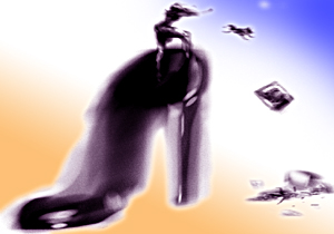 ante la pequeña hecatombe de sus pertenencias sobre la banqueta.