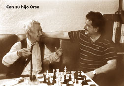 Cuando se da con la palabra clave, hay que repetirla. Incluso hasta la saciedad. Ya sea un poeta o un político el que se encuentre con ella. Recordemos también al gran músico, porque le basta un tema simple y esencial para desarrollar la sinfonía. Una frase popular es suficiente y una canción cualquiera, para que todos nos unamos al canto melódico y verbal. (Inventario.)Por otro lado, la actitud artística y extravagante de su persona, pese a su amor por los sonidos clásicos, era más cercana a la de un incendiario Jimi Hendrix que a la de Bach o Mozart. (¡Si me escuchara...!) Recuerdo que al enseñarnos a leer poesía en voz alta o a jugar ajedrez analizando las partidas de los grandes maestros por quienes sentía devoción infinita, el elemento rítmico de su vida brotaba con euforia como sucede en el mejor de los solos de batería. Pocos lo han dicho con claridad: mi abuelo no fue un gran ajedrecista, fue un gran amante de la batalla sobre el tablero, y más aún, de la batalla que antecedía a la derrota pero en la que se podía "solear", experimentar... ("Donde quiera que haya un duelo, estaré de parte del que cae.") No le importaban tanto las aperturas y los finales como la parte media del enfrentamiento, ese punto donde improvisación y genio se le unían gracias al ritmo de la conversación con sus mejores amigos; ritmo del sacrificio y de una armonía provocada por esas mesas de escaques construidas en su taller, bajo su riguroso diseño, y que soportaban piezas perfectas en peso y medida. (¡Cómo le gustaba sopesar alfiles y peones, hacer temblar reinas, reyes y torres para comprobar su estabilidad! Pero el favorito siempre era el caballo.) Era en esos momentos cuando mi abuelo era más jazzista que nunca. Ahí y en la televisión, cuando había que construir una hora de discurso mirando negros sobre blancos, edificios, mujeres, esculturas... ideas. Y para orquestar la partitura original del universo en un coro que cante la misma salvadora melodía, no acudimos a las cuerdas, a las maderas y a los cobres musicales. Pero ni siquiera a las percusiones pacíficas, por más estentóreas que sean en los timbales, en los platillos y en las cajas chicas o grandes de panderos, tambores y tamboras... (¿Para qué hablar ahora de triángulos, de tímpanos, de xilófonos, de órganos de viento y agua, de virginales, harpsicordios y clavecines y clavicémbalos, si todos se tocan en una clave más o menos bien temperada, desde la espineta hasta el piano forte que a veces suena pianísimo?) Lo cierto es que ahora empuñamos todos, y cada uno a su manera, instrumentos de muerte. En plan de solistas que destruyen, en beneficio propio, la sinfonía universal. Allá ellos. (Inventario.)Pero retrocedamos un poco. La relación de mi abuelo con la música empezó desde joven, con los géneros populares y gracias a la tradición musical de Jalisco. No hay que olvidar que Consuelo Velázquez fue coetánea suya, nacida en Zapotlán, lo mismo que Rolón, quien fuera director del Conservatorio Nacional. Asimismo, mi abuelo tuvo alguna relación con otros paisanos como Rubén Fuentes (a quien mi abuela recuerda tocando el acordeón y pretendiendo a su hermana Laura), Los Hermanos Reyes, Blas Galindo... Sin embargo, fue hasta su entrada a la escuela de teatro de Bellas Artes que Fernando Wagner, permitiéndole acceso libre a los conciertos en la sala principal, lo introdujo de lleno al mundo de las sonoridades "cultas". En aquellos años vería a grandes músicos e incluso tendría contacto con algunos, como Igor Stravinsky, a quien conocería junto con su primo Carlos Arreola tras colarse a los camerinos siguiéndole los pasos a don Alfonso Reyes. O con el director Sergiu Celibidache, con quien viviera una pequeña anécdota que mi tía Claudia recuerda muy bien: "Es una anécdota curiosa porque tu abuelo le salvó la vida a Celibidache. El hombre andaba muy lunático por aquella época y mi papá se dio cuenta de que lo iban a atropellar en la calle, así que a pesar de que el hombre era grande y fuerte, pues tu abuelo alcanzó a tomarlo por la cintura y hacerlo hacia atrás. Hasta ese momento reaccionó este individuo y fue cuando tu abuelo le dijo en francés que estaba en un grave peligro. Así que de ahí se fueron al hotel a platicar y pues Celibidache se quedó muy impresionado con tu abuelo, que después le llevó algunos de sus textos. Este hombre le dijo a tu abuelo que ya era un iniciado y que, en pocas palabras, se tenía que poner las pilas para continuar." Variaciones