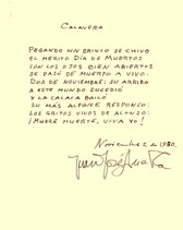 Ahí están los rebotes de la pelota de ping-pong dando ritmo al deslizamiento de las piezas sobre el tablero; más allá, el motor de dos tiempos de su motocicleta Vespa evitando los baches conocidos del empedrado que llegaba a su casa de Zapotlán. Están también sus rabietas nocturnas y el suave corte de su cuchillo de Ojeda mientras limpiaba de grasa los filetes que tanto tiempo le llevaba elegir. El ruido del periódico con el tembelequear de sus piernas. El tono de su voz al dirigirse a mi abuela Sara. El avión verde que armamos y que surcaba el aire de la barranca dando círculos. Los chocolates masticados en la oscuridad. El cambio de las hojas de un libro (siempre, siempre traía un libro bajo el brazo). La calavera que me escribió en un cumpleaños... Pero sobre todo, están sus manos elocuentes dirigiendo la obra del pensamiento al ser interpretada por su lengua y toda una vida gobernada "por el otro", atenta a las revelaciones que surgieran "a través de la zarza ardiente". Al leer en su cubierta que el disco estaba "prensado en México", dudé.Gracias, abuelo. |