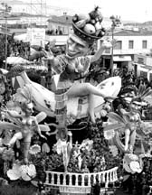 En el carnaval de Viareggio, un carro alegórico fue adornado con una voluptuosa figura del primer ministro italiano, al que acompañan los líderes del Senado y de la Cámara de Diputados FOTO AFP