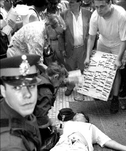 cuando un grupo de ahorristas reclamó frente a los bancos del centro