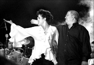 El público se anima y algunos claveles blancos vuelan hacia el escenario.