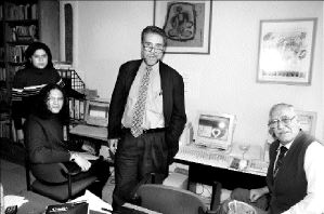 Desde hace seis años el departamento del escritor Guillermo Samperio comenzó a perder espacio de manera paulatina a costa de su despacho Ad hoc Ingeniería Cultural, el cual ha crecido tanto que ya invadió su recámara, donde aparte de libros y materiales se guardan sillas de plástico para los alumnos de los cursos y talleres que ahí se imparten.
