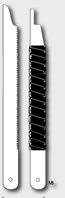 Para hacer las herramientas con la forma deseada, se reutilizan tramos de segueta quebradas o desgastadas; un esmeril sirve para desbastarlas.