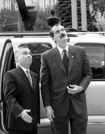 Vicente Fox y el procurador Rafael Macedo de la Concha observan los