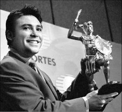 le entregó el premio Guerrero Azteca, el cual ganó por unanimidad