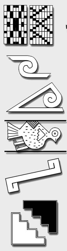 espirales, grecas, círcilos y anumales, como pájaros y serpientes;