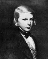 y túnica blanca, se inclina ante el retrato de Víctor Hugo,