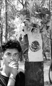 A unos 20 metros, dentro del amplio camellón junto al puente de Ticomán, están los dos colchones donde duermen algunos de ellos y, a falta de muro, el tronco de un árbol sirve para tener, en donde debiera estar la cabecera, la imagen de la Virgen de Guadalupe.