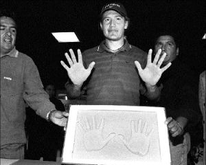El molde quedó listo para imitar sus manos en bronce y ser colocado en el Paseo de las Luminarias, en Plaza Galerías, y al improvisado estrado subieron a entregarle un póster enmarcado de la revista argentina El Gráfico, donde aparece vestido de charro.