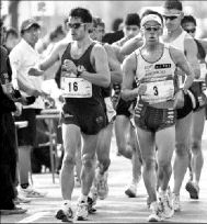 Diez marchistas consagrados fueron quienes conformaron el grupo que se fue al frente. En el kilómetro 10 (41:40 minutos) Pérez, López, Mario Flores, Korzeniowski, Noé Hernández y Omar Segura pelearon codo a codo la punta, y un poco más atrás venía el australiano Deakes.