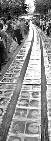 portaron una bandera de unos 150 metros de largo con las fotos de los desaparecidos