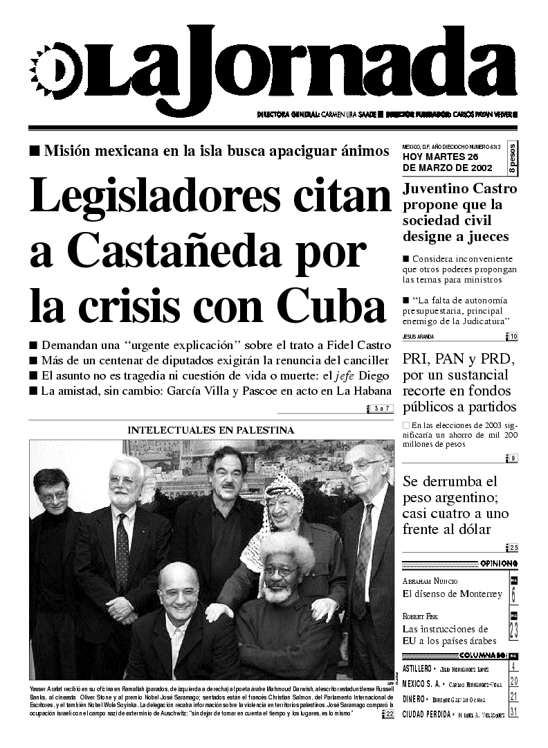 poeta árabe Mahmoud Darwish, al escritor estadunidense Russell Banks,