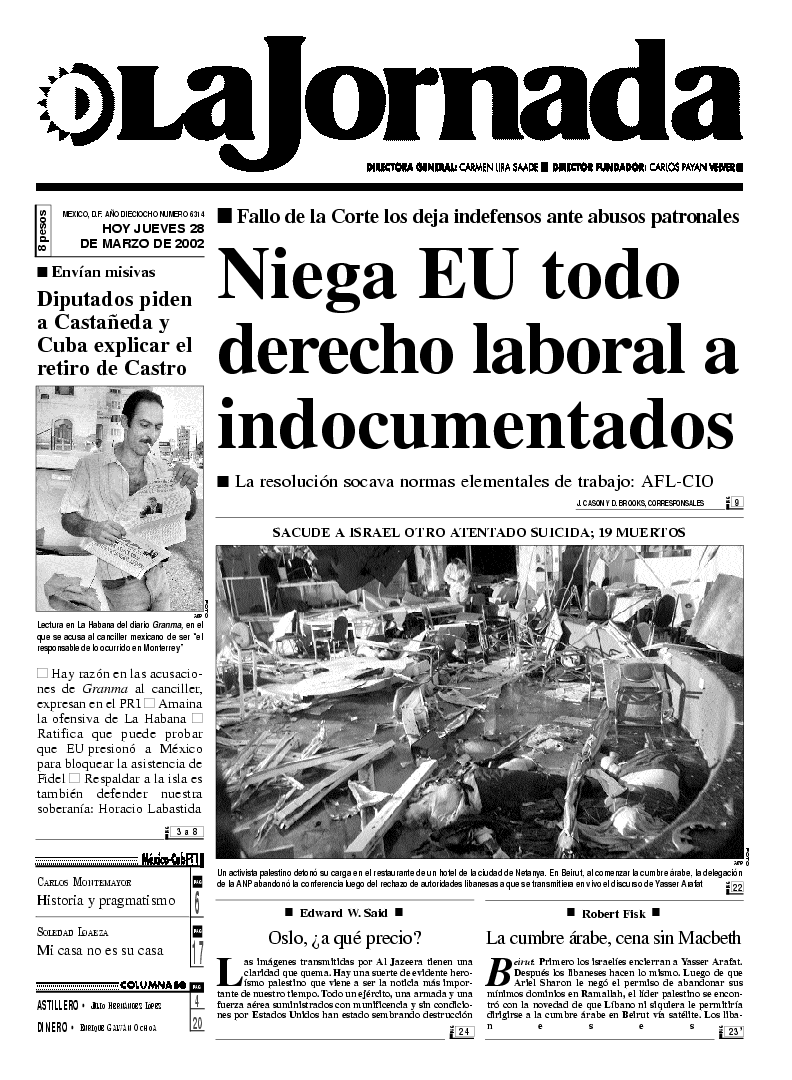 Lectura en La Habana del diario Granma, en el que se acusa al canciller mexicano de ser ``el responsable de lo ocurrido en Monterrey'' FOTO AFP