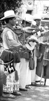 Indígenas huicholes interpretan