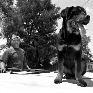 a su perro en el toldo de su auto en la cabecera de Tocuila,