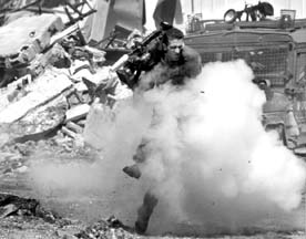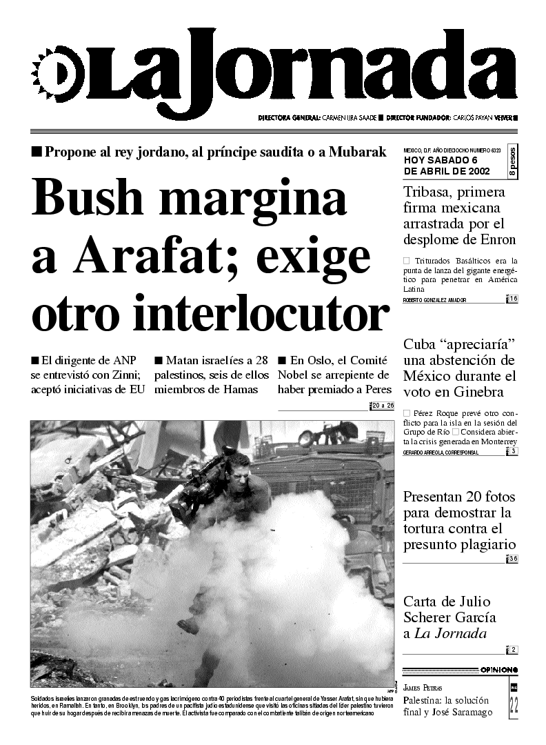 periodistas frente al cuartel general de Yasser Arafat, sin que