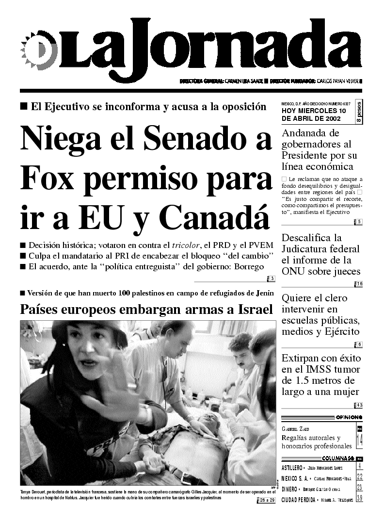 hombro en un hospital de Nablus. Jacquier fue herido cuando cubría los