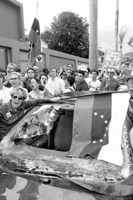 Cuba denunció que una turba violenta asedia su embajada en Caracas (en la imagen) y aseguró que los diplomáticos defenderán la sede ``aun al precio de su vida''. El nuevo gobierno venezolano cortó la venta de gasolina a la isla FOTO AFP