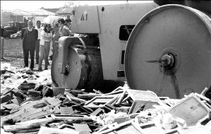 los símbolos del desempleo en la industria del disco. La aplanadora