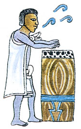 Sobre un petate de plumas de quetzal,
