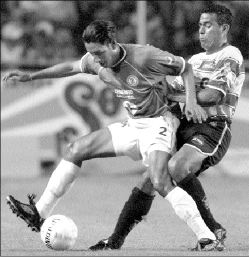 Abreu, quien por su mayor estatura le ganó en el salto a Omar Rodríguez