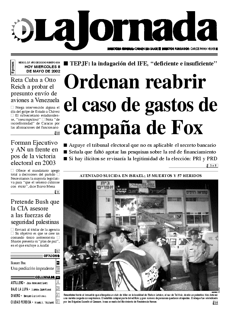 ATENTADO SUICIDA EN ISRAEL; 15 MUERTOS Y 57 HERIDOS