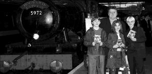 La quinta y última novela de la serie sobre Harry Potter, esperada por sus seguidores para este verano, será publicada hasta 2003, estimaron hoy fuentes cercanas a J. K. Rowling, la autora de la popular serie. Harry Potter y la orden del fénix, título tentativo de la quinta novela de la serie, era esperada por las librerías este mismo año, pero la autora aún trabaja en ella, por lo que su publicación será hasta el próximo año, indicaron las fuentes. En la imagen, los actores Robbie Coltrane, Rupert Grint, Emma Watson y Warwick Davis en la estación ferroviaria Kingscross, en Londres, durante la fiesta de presentación de la primera cinta de la saga en formato de video y DVD FOTO AFP