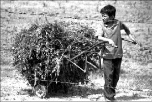 Un niño trabaja en la recolección de alfalfa en Tlaxcala