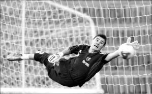 Bruce Arena, técnico del equipo, escoltado tras el cordón