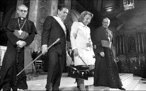 En la catedral de Buenos Aires, el mandatario escuchó una acre homilía, durante la ceremonia de conmemoración de la fecha patria (25 de mayo de 1810), en la cual Jorge Bergoglio, arzobispo local, advirtió que el país está al borde "de la disolución nacional", a la vez que criticó a los políticos y los intereses externos que agobian a la nación. El religioso fue severo "con los que representan a la gente" y pretenden mantener sus "privilegios, su rapacidad y sus cuotas de ganancias malhabidas".