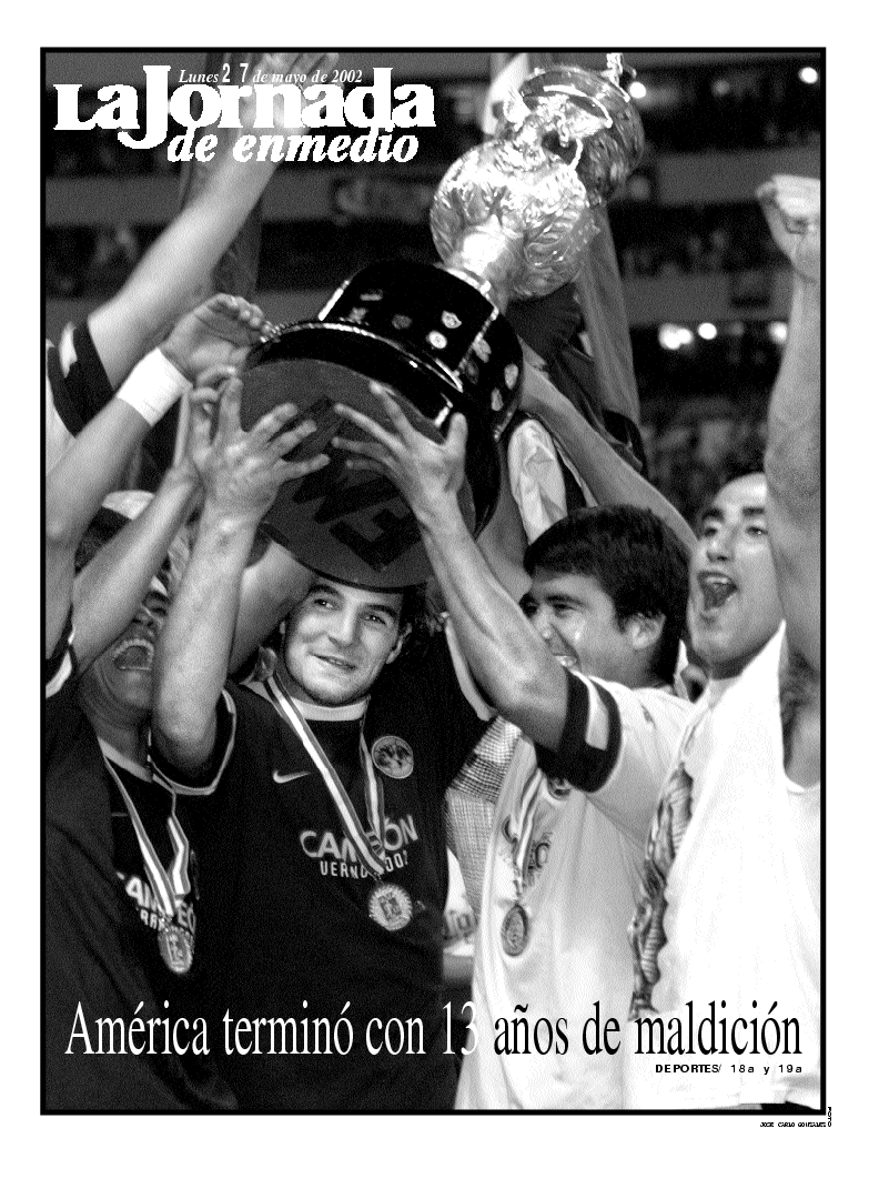 Las Aguilas lograron el título de Verano 2002 tras vencer en tiempo extra y con gol de oro a su hermano Necaxa, con marcador global de 3-2 en un emotivo y disputado partido en el estadio Azteca, que culminó entre cantos y fuegos artificiales. El dueño de los dos equipos, Emilio Azcárraga, declaró: ``Es una gran fiesta para todo el grupo (Televisa). Se ganó en la cancha y ante un gran rival'' FOTO JOSE CARLOS GONZALEZ