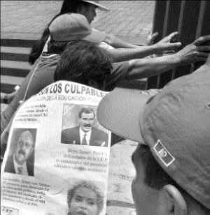 de la educación pública". Otros portaban cartulinas con caricaturas