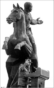 En alusión a un clásico del marxismo, un giro ya poco frecuente en sus discursos públicos, el mandatario calificó ese momento co-mo "el dieciocho brumario de W. Bush" (por El 18 Brumario de Luis Bonaparte, obra de Carlos Marx, de 1852, en la que el pensador alemán describe el golpe de Estado en Francia del año anterior como "el gobierno desnudo de la espada sobre la sociedad").