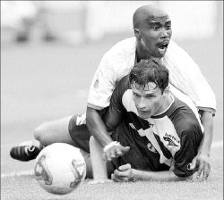 Además de goleador, Nomvethe realizó tareas de desequilibrio a mitad de cancha, que se tradujeron en el dominio de los australes en el campo.