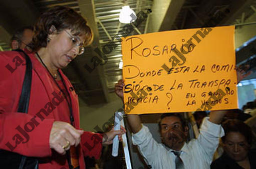 Rosario Robles sale despues de su mensaje en el tercer congreso ordinario del PRD DF en en Centro de Negocios de la Ciudad de Mexico, el 08 de junio del 2002. LA JORNADA/ Jose Carlo Gonzalez