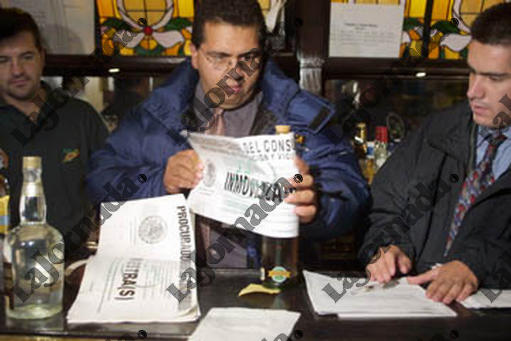 | Inspectores de la Profeco inmovilizan botellas al no cumplir las normas establecidas, en el bar Yuppies de la Zona Rosa, el que estaba lleno de fanaticos del futbol esperando ver el juego de la Seleccion Nacional frente a la de Ecuador el 9 de junio de 2002 |
