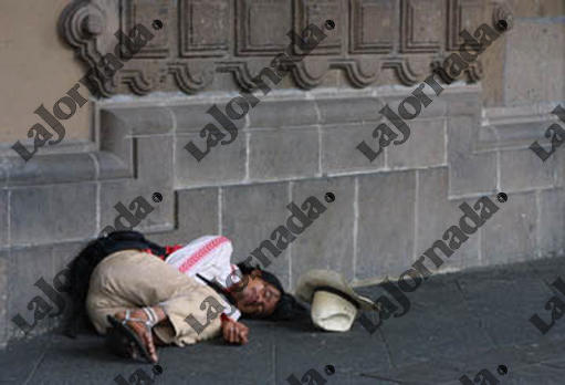 Un campesino duerme en los portales del edificio del gobierno capitalino, 08de junio de 2002. LA JORNADA/Guillermo Sologuren