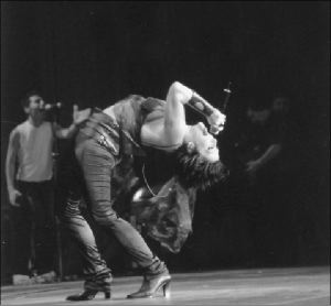 Sale de nuevo, se oye un solo de batería, y luego una marcha en la que entra una fila de bailarines en rojo y negro, cual soldados; ella aparece en rojo brillante, su número es intenso, dramático, atractivo. Se van ellos y aparece un guitarrista invitado, de Los Angeles, de notoria calidad. Alejandra le pasa debajo de las piernas, le acerca sus partes tiernas; el negrazo emite lo más fino del concierto. El sonido no permite apreciar el nombre del extraordinario músico... ¿Harry Danes? ¿Darryl James? Pero mientras lo entendíamos, que él mismo se revienta el clásico Wild thing... you make my heart sing! ¿Por qué si a ella le gusta ese tipo de rolas no se ve reflejado en lo que interpreta?