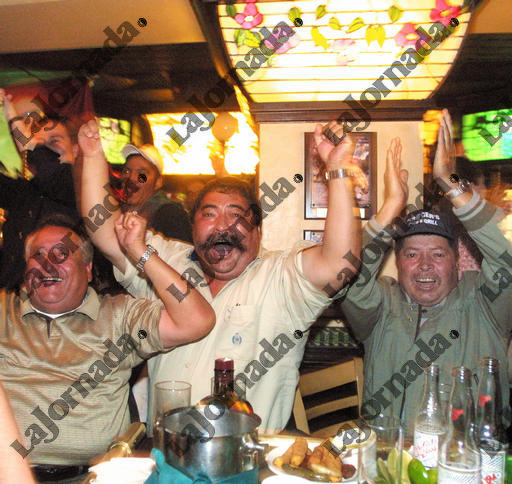 Aficionados festejan el un gol del equipo mexicano durante el juego entre la Seleccion de Mexico y la de Ecuador. 08 de junio del 2002 LA JORNADA/ Francisco Olvera