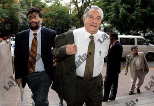 El secretario de energia Ernesto Martens se acomoda el saco acompanado de Francisco Barnes a su llegada a una reunion privada con la fraccion parlamentaria del PRD en el Senado, el 11 de junio de 2002. LA JORNADA/ Jose Nunez